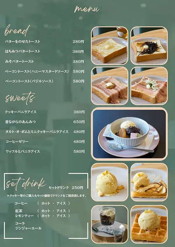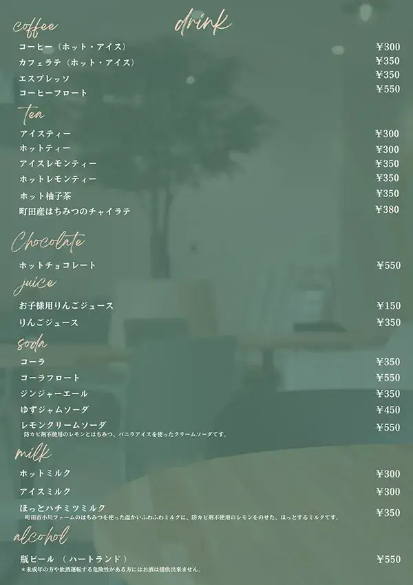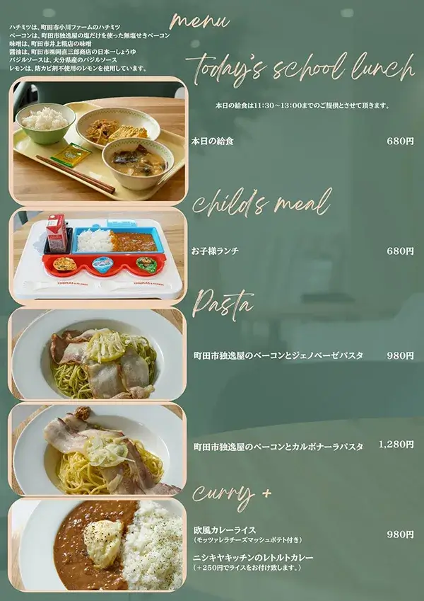 平日は給食の他に、ドリンク類はもちろん、町田市小山町にある井上糀店の無添加&天然醸造味噌を使ったみそバタートーストなどのパンメニューや、下小山田町にある小川ファームの自家製はちみつを使ったワッフルなどのスイーツもいただけます!