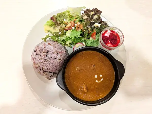 旬の素材やフルーツなどを使用した「季節のかき氷」が大人気の「Muffin&Bowls cafe CUPS」で食べられるカレーは、11月〜6月頃までのランチ限定。チキンがホロホロで、あっさりしつつも奥深い、リピ間違いなしのカレーです!