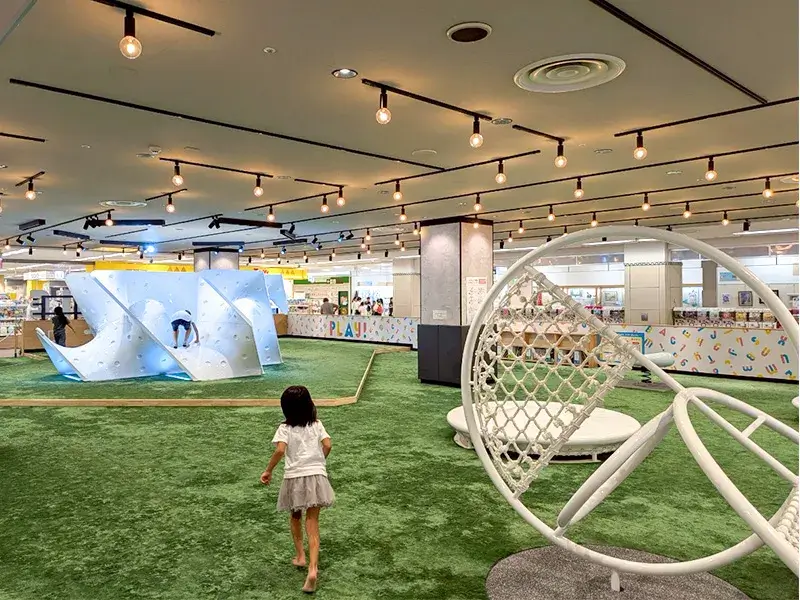 1階フロアにある、靴を脱いでゆったり過ごせる子どもスペース。ちょっと休憩したい時におすすめ♪