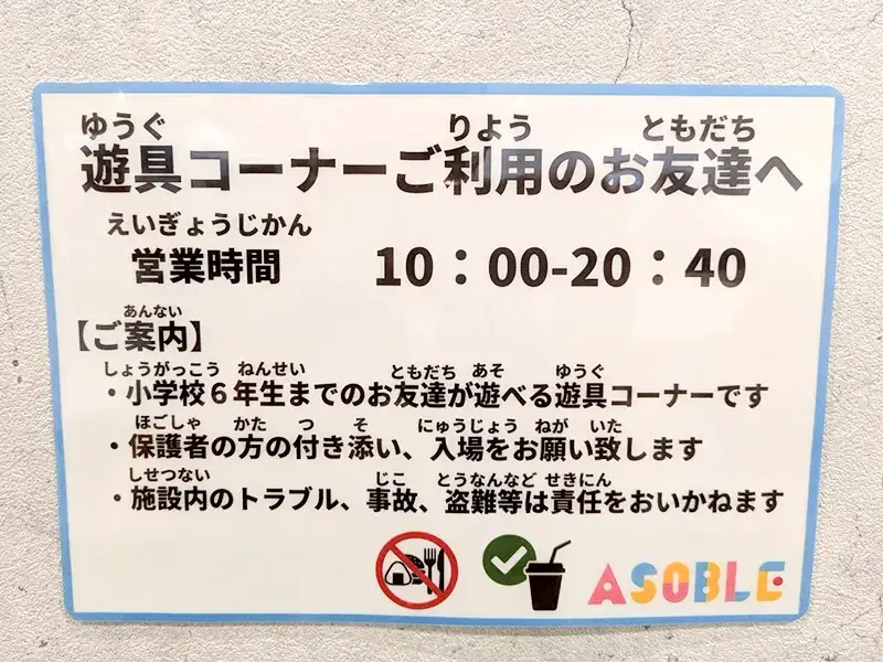 まず訪れたのは、3階フロアに今年7月18日(金)にオープンしたばかりの室内遊び場「ASOBLE」(アソブル)。