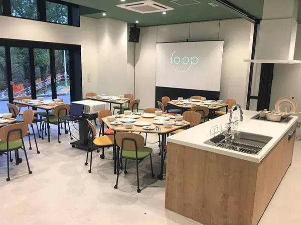 南エリア給食センターは、給食調理施設であるだけでなく、地域交流の場としての役割も担っています。併設された「loop Ondagawa」はカフェや多目的室を備え、町田忠生小山エリアの「loop Nanakuniyama」とはまた違った魅力に溢れています。