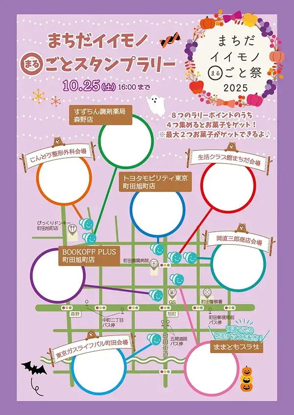 今年も昨年に引き続き、4つの会場で開催!お楽しみ抽選会やお菓子がもらえるスタンプラリーもありますよ♪