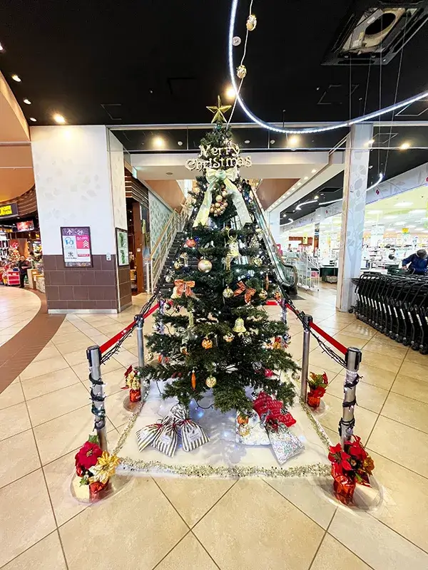正面入口外側大木ツリーは2025年12月31(水)まで / 正面入口館内ツリーは2025年12月25(木)まで
