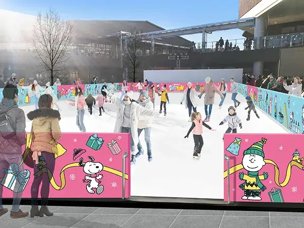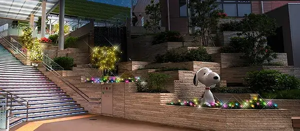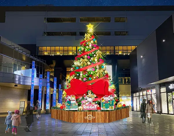 今年もシアタープラザに、高さ約8mのクリスマスツリーが登場します。テーマ「BIG GIFT」に合わせ、大きなリボンがかけられたツリーは、広場全体をそっと包み込むような存在感。親子でふと足を止めたくなる、あたたかな華やかさがあります。ツリーにはカラフルなリボンが飾られ、足元にはプレゼントボックスが並び、スヌーピーとピーナッツの仲間たちの世界へ迷い込んだような優しい雰囲気に!昼夜問わず写真を撮りたくなるスポットとしても楽しめます。