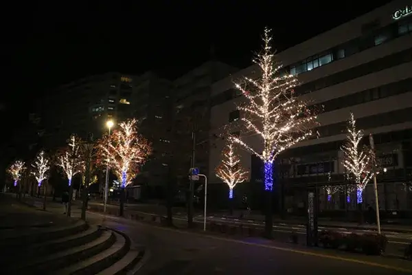 終電の時間まで駅前広場が華やかにライトアップされます。