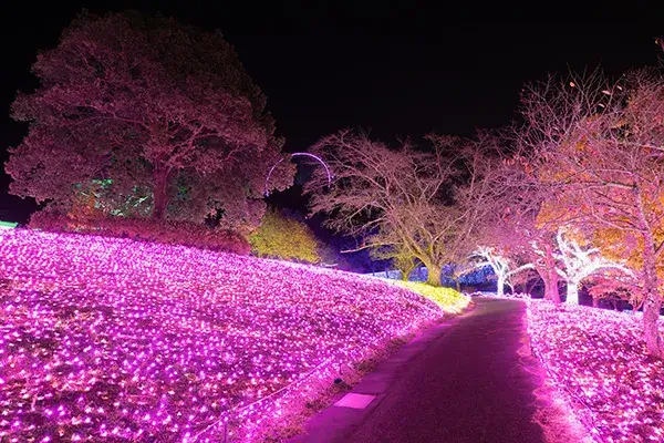 関東三大イルミネーションの一つ、さがみ湖イルミリオン。広大な土地と斜面の高低差を生かし、大自然と一体となった光の絶景を満喫できる関東最大級 600 万球のイルミネーションイベントです。