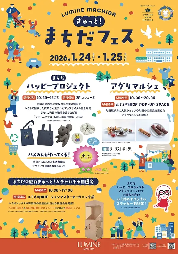 ルミネ町田では、1月24日(土)・25日(日)の2日間、地元小学生とのコラボイベントや、町田の人気店・名産品が一堂に会する「ぎゅっと!まちだフェス」を開催いたします。