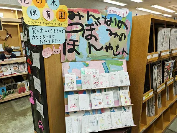 鶴川団地センター名店街にある<図書の貸出>と<コミュニティスペースの利用>ができる図書コミュニティ施設。一般の書籍だけでなく、保育園児お手製の可愛らしい絵本が置いてあり、もちろん貸出も可能です。