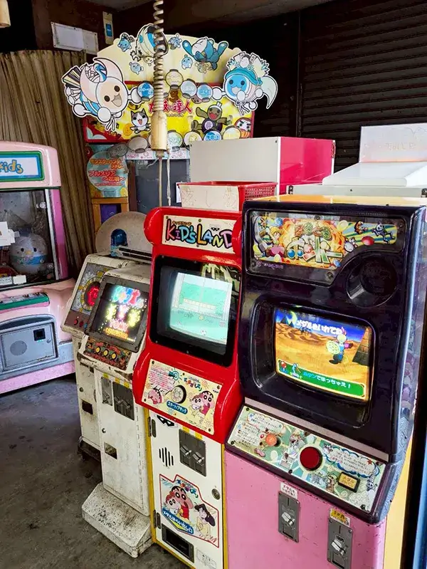 ゲームコーナーに並ぶのは、今では珍しい「10円ゲーム」やパドルコントローラー(円形のつまみがついたゲームコントローラー)のゲーム機。普段は電源がオフになっていますが、お店の方に声をかけると電源を入れてもらえます!