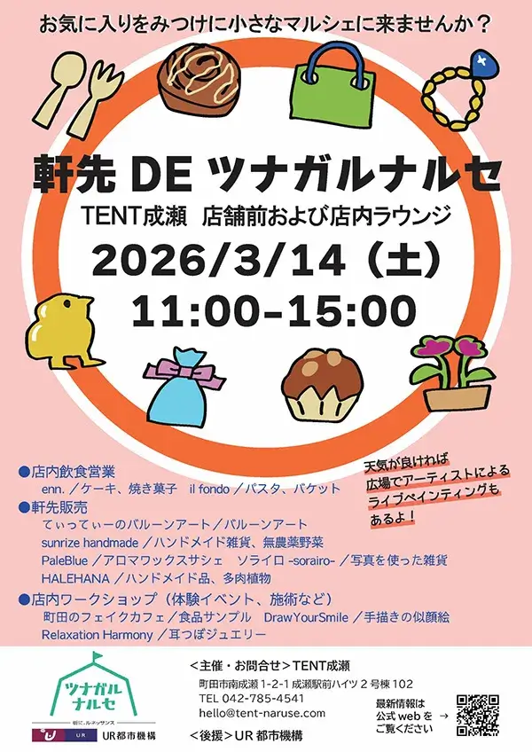 会場:TENT成瀬 店舗前および店内ラウンジ(町田市南成瀬1-2-1成瀬駅前ハイツ2号棟102)