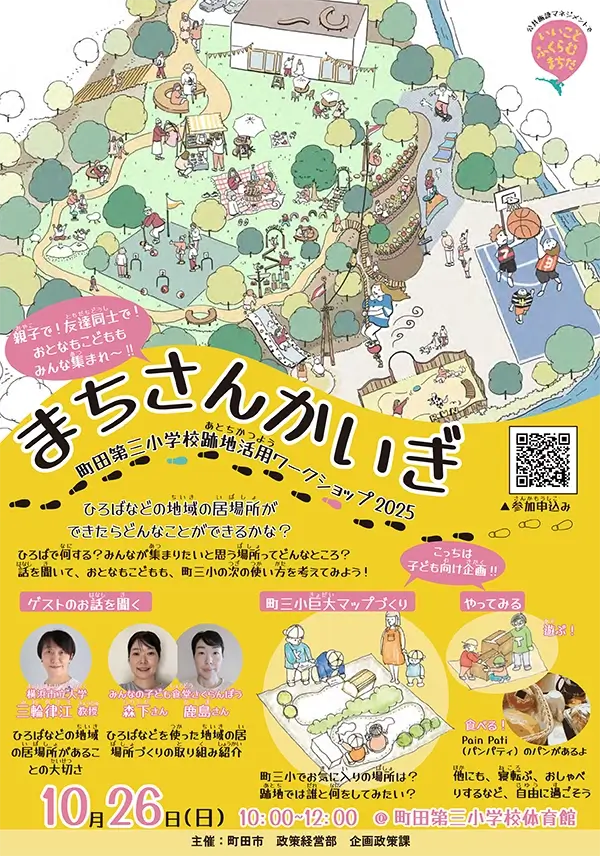 町田第三小学校(以下、町三小)の跡地活用を考えるワークショップ、「まちさんかいぎ」を開催します。