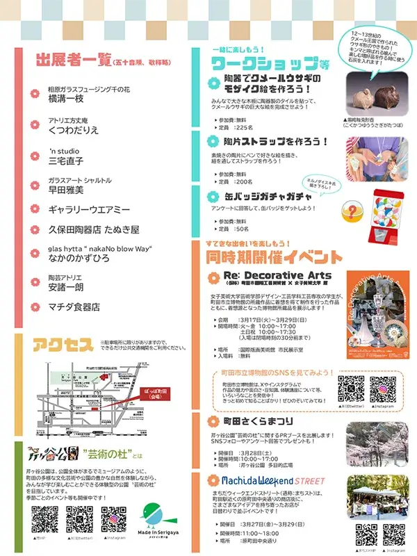当日は、市にゆかりのある作家・ギャラリー・食器店が出展し、こだわりのガラスとやきものを販売するほか、やきものに関するワークショップ等も!