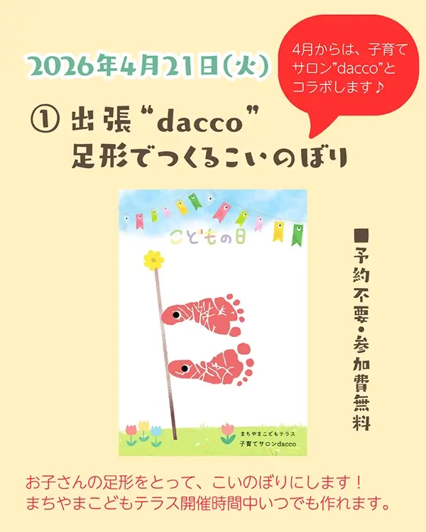 4月21日(火) 出張dacco(だっこ) 足形でつくるこいのぼり