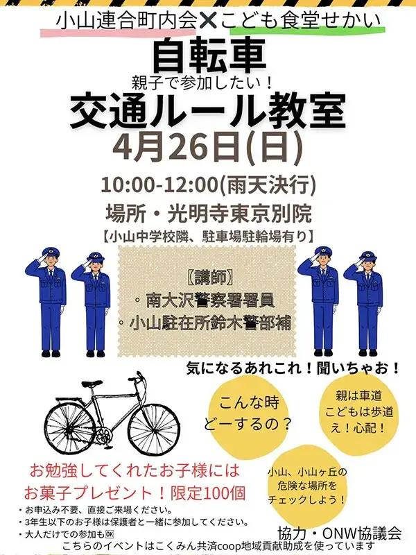 親は車道、子どもは歩道…ちょっと心配ですよね。 小山・小山ヶ丘の危険な場所も、一緒にチェックしましょう! お勉強してくれたお子さまには お菓子をプレゼント!(限定100個)